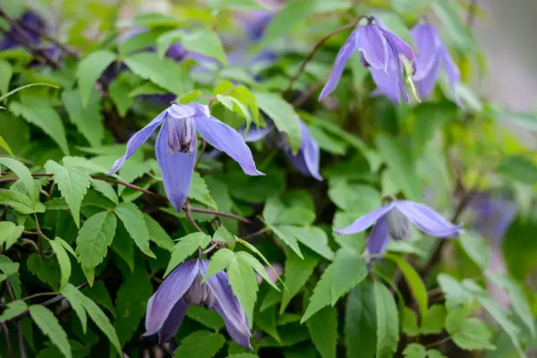 4月から5月までの花が完全に太陽または部分的な色合いで。落葉性。内側のクリーミーなセグメントのクラスターを備えた青色の花。品種には、「フランシス・リビス」と「ヘルシングボリ」が含まれます。剪定グループ1。