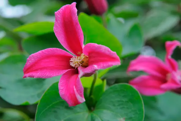 の深いピンクの花 Clemetis texensis