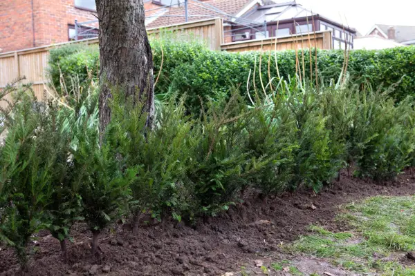 ヘッジがまっすぐになることを確認するために、植栽現場に沿って文字列線を設定します。選択したヘッジプラントの正しい間隔を確認し、列に沿って配置します。落葉性在来ヘッジ植物(ヘーゼルなど、 ホーソーン そして ブラックソーン ) can be planted in a double staggered row, while most others (such as yew , beech そして hornbeam ) should be planted singly.