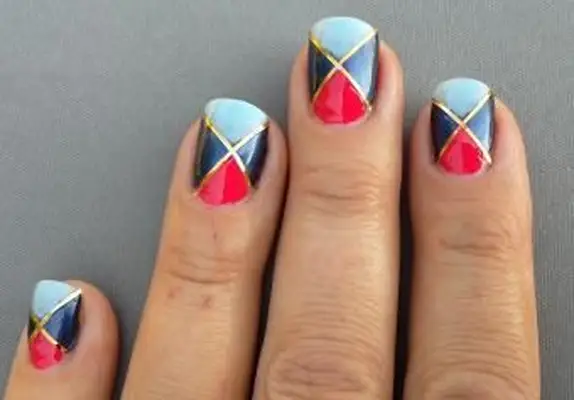 カラーブロックされたネイルは楽しくて人目を引くものであり、このタイプのネイルアートを作成する方法はたくさんあります。三角形の場合はテープの対角線、正方形、長方形、またはストライプの場合は直線など、ブロックの任意のレイアウトを選択できます。