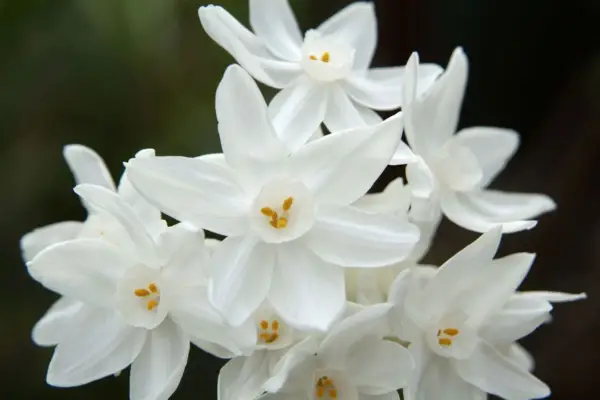Paperwhite narcissus, ナルシッスパピラセウス 、最も強い香りのナルシッスです。それは伝統的に切り花として使用されているか、冬にテーブルディスプレイで使用されることを余儀なくされています。そこでは、その信じられないほどの香りが数週間家を満たしています。それぞれの茎には、最大10個の純粋な白い花が搭載されています。